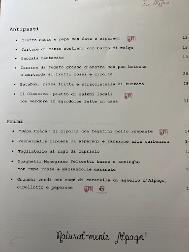 Read moreCu sono stato per una cena fra colleghi ed è stata una mezza delusione. Il menù era ottimo, tutto buono anche se l'agnello ai ferri era piuttosto grasso, la delusione è stata sul trattamento. Non c'eea antipasto e dopo il caffè neanche un digestivo soprattutto per chi non ha preso il caffè. Poi chi non ha mangiato carne come mia moglie perché vefetariana ha pagato uguale agli altri, 35 euro per un primo, una fetta di formaggio alla piastra e due patate e spinacci e un pezzo di tiramisù. Senza appunto neanche il caffè. Poi la cosa più incredibile che hanno chiesto e preteso 20 euro per i bambini che alcuni non hanno mangiato praticamente niente se non un po' di pasta, anzi una ha sddirittura mangiato con sua mamma. E dopo che qualcuno ha protestato la proprietaria ha motivato la cosa che era giustificato per il motivo che c'era chi ha mangiato tanto e chi ha mangiato poco, tutti pagano uguale. Praticamente chi ha mangiato poco ha pagato per chi ha mangiato tanto, bambini compreso. È assurdo. Naturalmente non...
