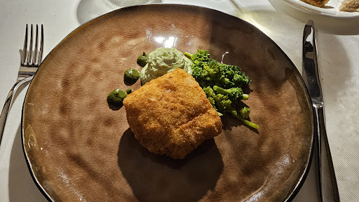 Come mi aspettavo da un ristorante di tale livello siamo stati accolti con un prosecco di benvenuto e dei piccoli assaggini che mi hanno fatto desiderare di assaggiare tutti gli altri piatti tant'è che abbiamo preso antipasto primo e secondo senza esitazione. Antipasto: pane e cipolla e carciofo fritto. Buoni Primo: ravioli al cacao con stracotto di cervo. Interessanti, il cacao amaro incuriosisce il palato senza sopraffare il resto. Piatto ben bilanciato nei sapori, forse lo avrei preferito leggermente più sapido, ma questo probabilmente solo per abitudine personale ai sapori. Vi consiglio di gustarli masticando molto lentamente, di assaporare pian piano tutti i sapori presenti, di degustarli, non mangiarli. (Consiglio alla Chef di impiattate 7 ravioli e non 5, disponendoli bene i due aggiuntivi entrerebbero nel piatto in maniera altrettanto elegante e soprattutto darebbero la possibilità al palato di abituarsi a tutti i sapori e di gustare appieno gli ultimi ravioli) secondo: baccalà in pastella e guancia di vitello. Cottura eccellente di entrambi i piatti, morbidissima sia la carne che il pesce, avrei preferito un sapore leggermente più deciso del baccalà o un po' più di crema di broccoli per accompagnarlo. Comunque molto graditi. Buone anche le verdure di accompagnamento perfettamente cotte. Dolce: un morbido al cioccolato con crema di arachidi, mou e filetti di peperone dolce. La mia compagna ne è rimasta estasiata, lo ha definito il dolce più buono che abbia mai mangiato. Io sono di parte perché adoro le arachidi quindi anche io l'ho trovato buonissimo. I sapori ricordano un po' lo Snickers, ma ovviamente stiamo parlando totalmente di un altro livello. I filetti di peperone dolce sono il tocco di classe che ho trovato geniale. Anche se abbiamo preso solo due calici, la carta dei vini non mi è sembrata molto ampia, ma il locale è nuovo e avrà tempo di ampliare la selezione. Conto 59€ a persona, perfettamente in linea con le aspettative e con l'esperienza avuta.