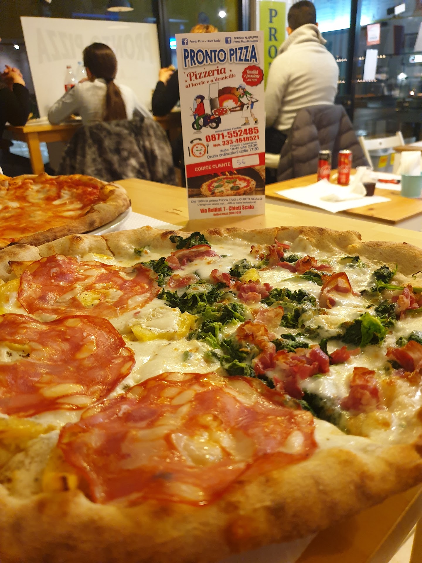 Per l'unica volta che sono riuscita a mangiarla devo dire che la pizza è buona, ma sono ben tre sabati consecutivi (e non è per la mole di ordini d'asporto che ricevono in questo periodo di restrizioni anti-Covid perché già mi è successo in passato) che provo a ordinare chiamando ININTERROTTAMENTE sia sul numero fisso che sul cellulare dalle 17:30 in poi, orario indicato sul menù come orario d'inizio ordinazioni, senza ricevere alcuna risposta: sul cellulare mi dà perennemente la segreteria, sul fisso a volte squilla altre volte è occupato o addirittura a volte risponde una voce registrata dicendo di riprovare a chiamare dopo qualche minuto perché in quel momento sono occupati al telefono (ma quale telefono se sto chiamando e non rispondono?!). Altri modi per ordinare non mi sembra ci siano o comunque non sono specificati né qui né sulla pagina Facebook né sul menù, quindi prima che ci si riesca a mettere in contatto con loro si fa in tempo a impastarsele a...