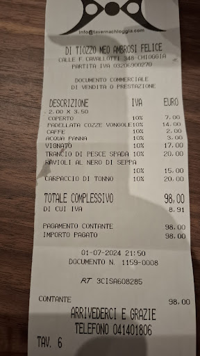 We've been here twice and ate exceptionally good. First time seppia ravioli with fish stuffing and sea food carbonara, second time antipasti, fish of the day (turbot) and tuna. Food seems very fresh and of good quality, unsurpassed by other restaurants in the area until now! In the downside, all the staff including the waiters wear their face mask on their chins. Don't seem too fond of Covid19 regulations as they put up placats, that they don't control greenpass (right now not mandatory but will be again). Unfortunately we did not reservate and both times got seated in the "closed veranda", where it's very hot, the second time we had to leave early and do without desert for...