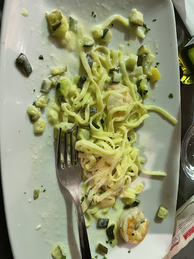 Read moreWir hatten für 21 Uhr einen Tisch bestellt und als wir kamen, war er gerade frei geworden. Die Kellnerin hat ihn für uns eingedeckt und uns Karten gegeben. Leider hatte sie beim Eindecken dad Besteck vergessen, das fiel ihr auch nicht auf, als die Vorspeisen serviert wurden und wir mussten ihr nachlaufen und sie darum bitten. Nach ca. 15 Minuten kam sie wieder, um die Bestellung aufzunehmen. Wir hatten 4 Pizzen, 3 Salate und einmal Muscheln bestellt. Die Salate kamen dann auch nach einer Weile. Drei der Pizzas wurden gegen 22.10 Uhr serviert und wir dachten, die vierte käme wohl auch gleich. War leider nicht so. Nach weiteren 10 Minuten fragten wir nach und die Kellnerin wirkte überrascht, dass noch was fehlte, sagte aber, die Pizza käme gleich. Offenbar wurde die Bestellung vorher vergessen, denn "gleich" waren weiter 15 Minuten Wartezeit. Die Muscheln kamen nie an und auf meine Nachfrage sagte mir die Kellnerin, sie wüsste es nicht, da sie nicht in der Küche arbeiten würde. Als sie nachgefragt hat, stellte sich heraus, dass auch die Bestellung vergessen wurde. Nachdem es inzwischen schon nach 22.30 Uhr war, stornierten wir die bestellten Muscheln. Entschuldigt hat sich übrigens erstmal niemand dafür, erst der Chef beim Bezahlen sagte kurz "Entschuldigung." Fazit: von 5 bestellten Hauptgerichten wurden 2 vergessen und auch nach langer Wartezeit und Nachfrage erhielten wir nur 4 von 5 der bestellten Gerichte. Das Essen war in Ordnung, aber der Service...