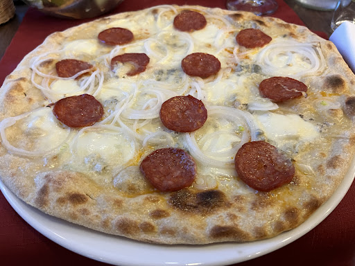 Locale arredato in modo particolare, ben curato e personale molto gentile. Pochissimi posti a sedere ma d'altronde ê principalmente una pizzeria da asporto. Possibilita di gustare pizza classica, pizza con impasto napoletano (supplemento 1.50€), con cornicione ripieno (+2.00€) e pizza in teglia (unica farcitura con pomod., mozzar., pecorino, grana). Provato solo quella in teglia e rimasto un po deluso: impasto molto alto e poco cotto, retrogusto un po amaro dovuto forse all'olio messo nella teglia rotonda di ferro per evitare che la pasta si attacchi e sentore di lievito..... Le patatine fritte mangiate aspettando la pizza sono a taglio julienne (bastoncini sottili), ben cotte, non unte, un po salate ma di sicuro l'olio della frittura era pulito o appena cambiato. I prezzi delle bevande molto alti (birra da 50cl in bottiglia non artigianale a 6,00€!!!). Eviterei di applicare anche il coperto di 1,50€ vista la mise en place composta da un runner e il piatto della pizza. Forse la scelta della pizza in teglia non ê stata fortunata, magari concederó un'altra possibilita provando una...