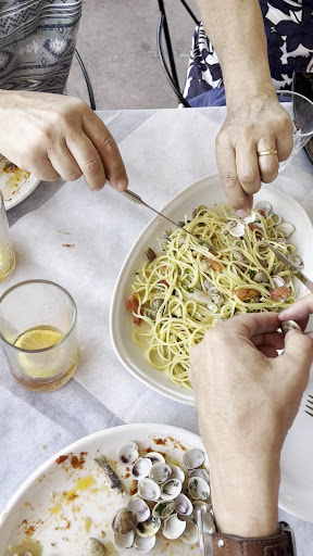 I had one of the most memorable meals of my life here - it reminded me of my mother’s favorite restaurant in San Francisco where, even after ten years away they treated her like family. After the proprietor, Eddy, told us that we shouldn’t drink a spritz, but have an appertivo of his creation - the “Eddy” - the meal took off - and I never looked back. This is a place where you go to escape the tourists and eat like a prince with the people that keep the tourists AND the locals happy. There was a birthday party next to us and a stream of locals coming by for a drink and a chat - in fact a card game broke out at the end of our three hour lunch. GO!, give Eddy my best and bask in a true, lovely experience. The Eddy was also favorably recommended by the table next to us - so we struck up a conversation with that table. We agreed - the Eddy was a great option. Then, after the most amazing plate of restaurant mussels ever (“restaurant“ qualifier because I have an Italian brother-in-law/chef) we polished off spaghetti with clams, and, when we thought we were done, we had a beautiful plate of fried prawns and calamari, pretty much the best ever -...