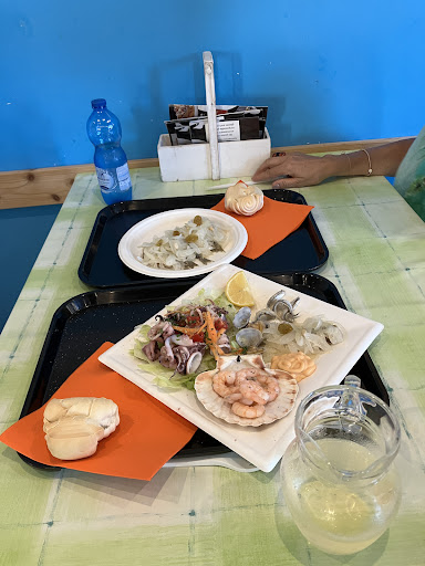 Locale dall'aspetto essenziale, orientato alla praticità. Pochi fronzoli: tovaglie in plastica, nuove e pulite, arredo leggero, anch'esso dall'aspetto nuovo. I tendoni lindi come nuovi e, tenuto conto del contesto urbanistico in cui le muffe marine si attaccano a qualsiasi cosa con rapidità impressionante, la pulizia è degna di nota e lodevole. Servizi igienici; uno, ampio e nondimeno rispetto al resto, pulito. Incuriositi da un divertente avviso in vetrina ci imbattiamo subito nel proprietario: l'accoglienza è stato amore: un colpo di fulmine. Lui e la sua signora ci spiegano come funziona il servizio e ci fanno accomodare. Scegliamo un'insalata di mare, una lasagna di pesce, due fritti misti con patatine, uno spritz consigliato con merito originale veneziano, bibita in lattina, acqua. Si ordina diretti al banco e poi un cicalino avverte quando è pronto. Sorseggio lo spritz preparato dalla signora nell'attesa delle prime portate. Fresco, gradevole, equilibrato. La nota alcolica è leggera, il bitter è amaricante al punto giusto e il vino in miscela lega discreto. Ne ordino un secondo, perfetto e perfettamente identico al primo. Le prime portate sono pronte dopo circa un quarto d'ora come già annunciato al momento dell'ordine, Ritiro il vassoio e servo io. Piatti e posate sono in materiale compostabile, di ottima qualità. La lasagna di pesce è abbondante, la pasta è buona, morbida. Il gusto pieno e benché io sia più affezionato alla classica, rubo volentieri qualche boccone alla mia dolce metà. L'insalata di pesce è uno spettacolo per la vista e per il gusto. Profumo delicato, il pesce è fresco e sa di fresco. Adagiato su un letto di insalata tritata fine è composta da seppioline, calamari e gamberetti consistenti e morbidi, accompagnati da una salsa rosa delicata e da una bella fetta di limone. Giusto il tempo di consumare comodi i primi piatti e sono pronte le due barchette di fritto misto con patatine fritte. Asciutti, affatto unti, né il pesce né le patate. Seppioline gamberetti, calamaretti dorati in una pastella leggera e croccante, morbidi che si sciolgono in bocca. Nessuna fastidiosa sensazione di "gommosità" sotto i denti, tipica delle fritture miste decongelate. Di olio e di unto nessuna sgradevole traccia, né al tatto né al palato. Patatine fritte leggere, morbide e consistenti. Porzioni generose, ci siamo alzati sazi e soddisfatti. Il servizio fai da te, scelto per contenere i costi del servizio e per permettere quindi di orientarsi su una migliore resa in termini di rapporto qualità prezzo, è anche un interessante e divertente momento di coinvolgimento per l'avventore, che si trova a ripetere quei gesti quotidiani che sanno di desco familiare. La scelta delle posate e degli accessori si scosta dall'eleganza del classico servizio di tovagliato e ceramica, puntando sulla praticità del monouso con una particolare sensibilità all'ambiente e allo spreco. Esperimento riuscito, prezzi contenuti,...