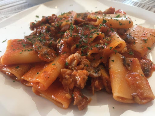 Ristorante in posizione defilata, sembra una zona industriale ma dentro è accogliente. Quando siamo arrivati noi c'era poca gente ma poi si è riempito velocemente. I camerieri sono gentili e premurosi, ho notato che le precauzioni Covid erano prese alla lettera, tutti con la mascherina e anche i tavoli erano stati appositamente diatanziati. Abbiamo preso due antipasti di pesce e poi due grigliate miste sempre di pesce, cibo nella media ma niente di spettacolare, forse un po' troppo vecchio stile. Ci hanno portato una focaccia appena fatta dal pizzaiolo con olio aglio e origano e quella sì che era speciale. Probabilmente il pezzo forte di questo locale sono proprio le pizze, perché ho visto che tutte le persone del luogo le ordinavano, sia chi era seduto ai tavoli ma anche chi le prendeva per asporto. I prezzi forse leggermente alti. Due antipasti e due grigliate di pesce con una bottiglia di vino, le focacce, acqua, caffè e...