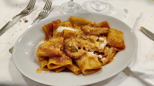 Read moreInteresting place. We got there on a Wednesday evening, at first the place looked closed, but then a positive Italian man opened the door for us and seated us at a table in a large hall with many tables. We were not offered a menu. Instead we were asked about our preferences and that's how we ended up with the food in the picture. In total we paid 30 euro for this which seems expensive as each carafe of wine was only 3 euros, so it is 12 euro for pasta which is like in Rome. However, we got the feeling of a real...