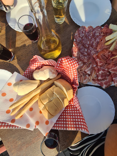 Il posto in sé è molto bello, dai tavoli si gode di un ottimo panorama, complessivamente sono stato molto contento di esserci stato ma per una serie di fattori non me la sento di valutarlo più di tre stelle: al nostro arrivo il locale sembrava piuttosto affollato, un cartello all'entrata chiedeva di attendere lì il personale, giunto solo dopo parecchio tempo di attesa nonostante ci fossero persone visibilmente in attesa di entrare, personalmente ho trovato un po' scortese che mi abbiano fatto attendere lì senza curarsi minimamente di me, bastava che qualcuno venisse a dirci se si stavano liberando dei tavoli o quanto era l'attesa. Una volta entrati e seduti al tavolo il personale si è però rivelato sempre cortese e disponibile, chiaramente il servizio non è proprio il loro forte, un po' grossolano, ma da un posto alla buona si può aspettarselo. I taglieri non sono affatto male, sia i salumi che i formaggi sono buoni e le porzioni sono abbondanti, il vino devo dire senza infamia e senza lode, vino da osteria, si beve molto bene, infatti ne abbiamo bevuto parecchio! Nota davvero dolente sul pane, se vai in un posto a mangiare pane e salutami il pane è il 50% del pranzo e se non è buono è un problema, meriterebbe più attenzione da parte loro, sorvoliamo sul fatto che uno dei panini nel cestino venisse palesemente da un altro tavolo (era macchiato di vino rosso...) ma su questo non ci siamo formalizzati. Punto assolutamente a favore il prezzo, molto inferiore a quanto ci saremmo aspettati, solo per questo meriterebbe un altra visita. Se me ne capiterà occasione ci tornerò e gli darò un'altra possibilità, se ci si mette nell'ottica che è un posto alla buona e non si hanno troppe aspettative merita e ci si possono passare delle ore...