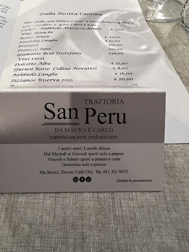 Superlativi.Davvero.Io non spreco complimenti, e tra, lavoro e amici ho provato diversi locali fra Milano,Torino, altre città e relative province. I complimenti li faccio a chi se li merita.E qui li stra meritano.Questo è il mio luogo del cuore ove passare qualche ora del weekend end in piena serenità.Parliamo del cibo!? Un piacere da godere. Servizio?:Beh evviva !!!!spettacolare.Finalmente!! Un luogo dove c'è attenzione e cura,professionalità e cortesia VERI. Non manierismi,non camerieri che sfrecciano in alte uniformi con l'auricolare e una malcelata insofferenza mentre aspetti 45 minuti per fare ordinazione, le mezz'orette per intercettare uno sguardo e chiedere acqua, o ti ritrovi a ordinare l'ennesima Cesar salad da aereoporto, che è di fatto un'opera insalata da busta con crostini costosoni. Qui trovi persone curate, attente, precise e evvivaaaaa gentili vere. E sollecite. Ragazzi finalmente.La qualità vera! A coronamento un vino (in accoppiamento col cibo) di piacere, un atteggiamento franco e cortese, e molto altro. Una comunità di affezionati-ssimi clienti che amano un saluto di conoscenza o una chiacchera di ritrovo. Un mondo bello,bellissimo.Una fortuna fortunosa averlo vicino. Che goduria.E, giusto per dire, Il rapporto qualità/prezzo introvabile.Infatti conviene prenotare perché la gente va dove si sta bene e qui SI STA BENONE!.W L'eccellenza piemontese, W San Peru, un plus alla titolare che stimo come professionista e persona, e ritrovo il fine settimana con gioia,allo staff (ragazze siete super!) e a tutti coloro che stanno in cucina. Ci fossero cento stelle? Le cliccherei tutte e di più. Perché...