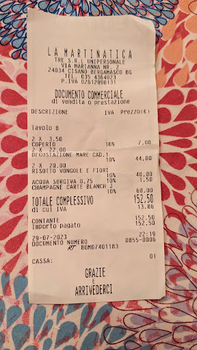 Pranzo per 4 ottimo, però dovrebbero essere un po' più chiari sul menù, l'antipasto di mare che abbiamo scelto riportava la seguente dicitura: "antipasto di mare 23€ per minimo 2 persone" alla cameriera abbiamo chiesto 2 antipasti che avremmo degustato in 4. Sul conto ci aspettavamo 46€ e non 92€. È vero che rileggendo più attentamente il menù fa capire che il costo è di 23€ a persona, ma che viene preparato per un minimo di 2. Però quando abbiamo ordinato 2 antipasti dicendo alla cameriera che lo avremmo diviso in 4 lei stessa avrà capito che abbiamo interpretato male il menù, ma ha fatto finta di...