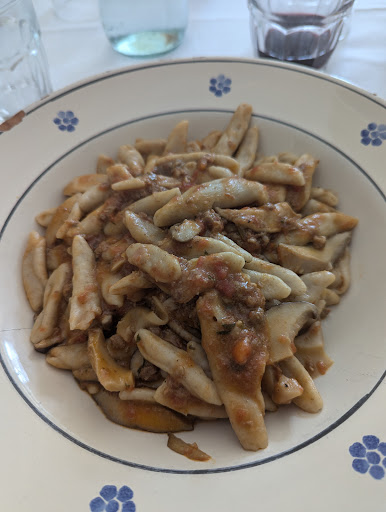 We ate dinner at this restaurant due to a local recommendation from the property manager at our Bnb in Ostuni. It also happened to be our very first meal during our very first time in Italy after a very long day of air travel from NYC so I remember it well. I'm all about eating where the locals eat and this was definitely a locals joint. I don't remember everything that we ordered but we had the antipasti (which included several local dishes) along with some pasta dishes including an orrechiete dish, which we were told included donkey meat. We had our server repeat "donkey" several times just to make sure we heard her correctly. It was surprisingly delicious and tasted just like beef. We just figured...when in Rome right....?! and went with it. Their portions were generous and quite delicious. The house wine was cheap and good and our check for a group of 4 was just about $60. It ended up being a really good recommendation. It struck us as strange that our table was initially served with bread and nothing else. We had to ask for olive oil and salt and later came to discover after spending the next 2 weeks all over Italy, that this is quite the norm there....