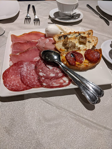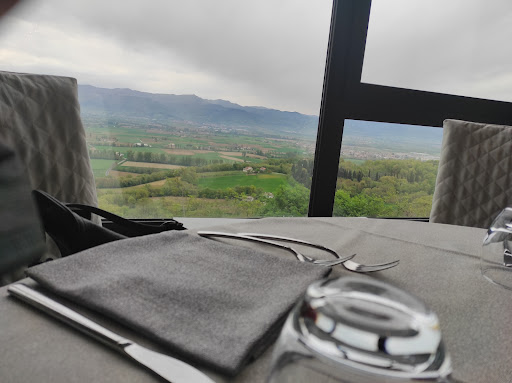 Read moreIl ristorante ha un ampia sala con finestrone che permettono di vedere tutta la valle e un'altra sala dove eravamo fatti accomodare noi da cui si intravedeva qualcosa in base al posto tavola occupato. Tavola e sedie ben preparate. Abbiamo prenotato il tavolo per le 20.30, arrivati puntualissimi abbiamo aspettato in piedi in attesa di essere fatti accomodare ma, il personale non c'era, ci siamo affacciati in alcune stanze fin quando ci anno fatto accomodare. Il servizio è stata cortese e gentile. L'attesa lunga sia per i menù, sia per l'ordinazione, sia per il pane concesso in piccolissime dosi. Siamo stati serviti dopo un'ora da quando ci siamo accomodati e aimé l'ultimo ad essere servito è stato il bimbo più piccolo (una leggerezza importante). Le pietanze erano curate e buone dai primi ai secondi che insalate. Si sono dimenticati di portare le due patate fritte ordinate, una destinata sempre al solito bimbo e sollecitate sono arrivate tardi, le altre non sono arrivate (correttezza vuole che non sono state fatte pagare). Il conto onesto. Il sabato sera seppur pizzeria non hanno fatto servizio pizza sicuramente una pecca ma di questo ci avevano avvisati al momento della prenotazione. Forse dato che il ristorante era pieno avrebbero dovuto avvisare anche che non avrebbero potuto servirci alle 20.30 come richiesto facendoci arrivare più tardi evitando di aspettare al tavolo inutilmente. Sicuramente, per l'esperienza fatta, non è un ristorante...