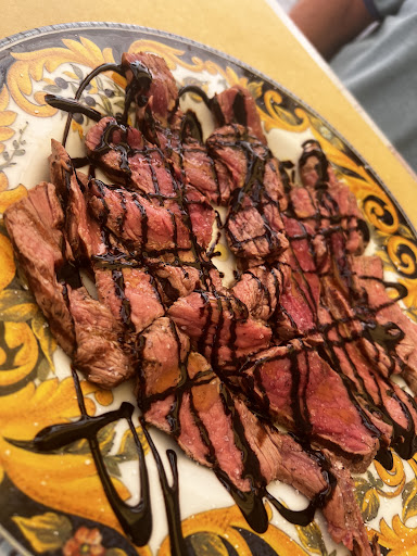 Read moreIn agosto, durante il Palio dei Terzieri , la maggior parte dei turisti si accentra nei locali di Borgodentro e Casalino. Noi , nel Terzierie Castello , con la complicità del piacevole refolo d'aria che scende lungo la via Garibaldi , abbiamo trovato il nostro pranzo ideale. Simpaticamente accuditi dalla romanità di Maurizio e dalla garbata professionalità di Zikra, abbiamo gustato degli strepitosi pici all'aglione, seguiti da una tagliata dalla succulenta morbidezza, accompagnata da fagioli cannellini con cipolla rossa , il tutto condito da un eccellente olio EVO. Ottimo il suggerimento del rosso al calice, profumato blend di Sangiovese , Merlot, Gamay e Cabernet Sauvignon. Semplicità decisamente convincente , grazie alla evidente qualità degli ingredienti. Accoglienza coinvolgente, ma anche professionalità competente. Un poco più defilati dalla kermesse del Burgi Gaudio , siamo stati benissimo , con un conto ottimamente proporzionato. Consigliatissimo. Alla prossima ..da...