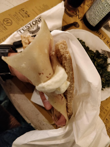 Read morePrima esperienza al Testone super positiva, tornerò sicuramente. La cameriera ci ha accompagnato al tavolo ed essendo la prima volta ci ha gentilmente spiegato il funzionamento (semplicissimo) Arrivati alla cassa ad accoglierci c'era Paola una ragazza simpaticissima , dopo aver proceduto all'ordinazione e preso le bibite siamo tornati al tavolo,mentre attendevamo le portate abbiamo dato un occhiata al locale....una vera figata. Un mix di accessori nelle pareti molto ben disposti che creano un ambiente caldo e accogliente. Abbiamo preso una grigliata mista squisita carne tenerissima alla brace cotta al momento con la torta al testo tradizionale umbra fatta a mano e due hamburger matriciana e alla carbonara con patatine alla brace e patatine fritte. Hamburger buoni e saporiti,ma la grigliata con torta al testo veramente tanta roba ! ! Ottimo staff,con il bancone a vista si vede con che celerità i cuochi preparano carne , panini e torta veramente bravi, la cameriera con i capelli corti ha veramente una marcia in più , una saetta tra i tavoli ,e sempre disponibile,tenetela stretta. Prezzo più che onesto considerando la qualità del cibo.