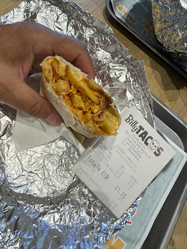 Read morePer essere la prima volta da Billy Tacos l'esperienza è stata completamente deludente. Abbiamo ordinato tramite totem multimediale, pagato in cassa, ci siamo accomodati al tavolo, ritirato l'ordine, fatto il primo boccone e...entrambi i wrap erano freddi, ovvero, se bene o male la carne era appena tiepida, questo tepore era stemperato dall'insalata fredda di frigo. Per carità, il sapore era pure buono e il personale gentile, ma non è possibile servire dei wrap freddi, è una temperatura inaccettabile! L'impressione, essendo le tre addette dietro il banco molto giovani, è la mancanza di un responsabile di polso, in grado di gestire la situazione, non è col menefreghismo allo stato pure che si conquistano i clienti! Non lo consigliamo e non ci torneremo! Peccato, perché siamo clienti di un'altra famosa catena del gruppo Cremonini dal lontano 2007 ed essendoci trovati molto bene avevamo aspettative molto...