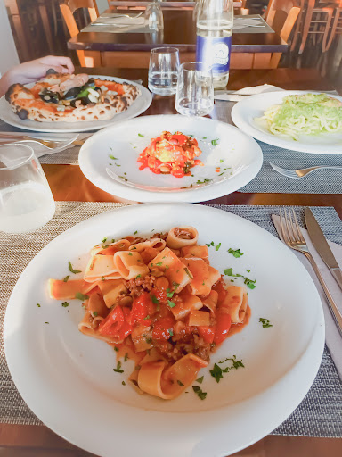 Read moreEs ist so schade... Wir gehen seid 6 Jahren jeden Sommer dort essen. Es war anfangs hier in der Gegend mit die beste Pizza und das geschmackvollste Essen. Es hat im Laufe der letzten 2 Jahre leider so sehr nachgelassen. Vor ein paar Jahren gab es noch tolle Gerichte aus der Region auf und Tagesempfehlungen. Jetzt ist die Karte eher auf Touris minimiert worden. Das Preis/Leistungs - Verhältnis stimmt leider nicht mehr. Mein Mann und ich hatten Pasta... War geschmacklich ok, aber die Portionen waren sehr überschaubar. Leider waren beide Gerichte nur lauwarm. Unsere Vorspeise wurde zum Hauptgang mit serviert (na ja, kann passieren). Die Pizza unserer Tochter war sehr enttäuschend.. War von der Größe eher eine kleinen Kinderpizza. Schon letztes Jahr ähnelte die Pizza die der typischen aus Neapel (sehr dicker Rand), aber da war sie noch normal groß.... aber jetzt. 🙁 Der Bereich für den Belag war gerade mal so groß wie 2 Hände nebeneinander geschlossen. Achtet auf die Pizza im Foto und daneben die Hand meiner Tochter (12 Jahre) so könnt ihr die große erahnen.. peinlich klein. Meine Tochter war sehr enttäuscht.... Der Rand war leicht verbrannt (ok, nicht schlimm) und in der Mitte war der Teig zwar dünn, aber absolut nicht durch. Auch ihre Pizza war lauwarm. Wir hatten das Gefühl, dass die Meeresfrüchte auf die Pizza nachträglich fertig gegart darauf gelegt wurden und nicht mitgebacken. Anbei findet ihr ein Bild, aber es sieht besser aus, als es leider war. Auch anhand von dem Besteck, neben den Tellern kann man erahnen wie bescheiden die Portionen der Speisen waren.