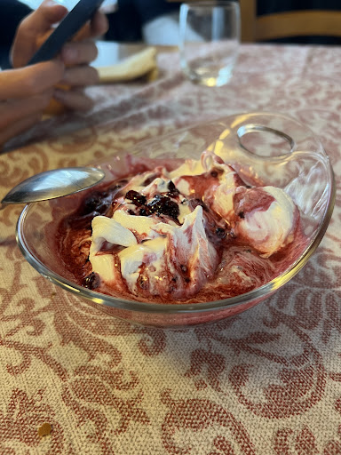 I ordered a delicious pink gnocchi which I forgot to photograph, but the highlight was the most incredible ice cream we’ve ever tried. It’s pushed around on a massive cart towards the end of your meal, and you have no choice but to indulge. The mixed fruit compote went perfectly together. I almost want to see the ice cream tasted like sweetened burrata gelato somehow....