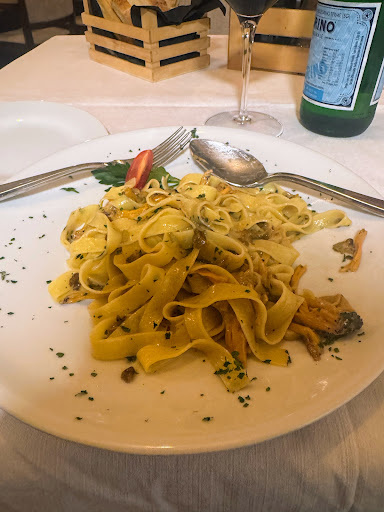 The complimentary appetizer was sun-dried tomatoes with olive pâté — full of flavor and not too salty. I had the “Fettuccine all’uovo con tartufo fresco di Acqualagna” fettuccine with fresh truffle handmade, flavorful, and generous with truffle.