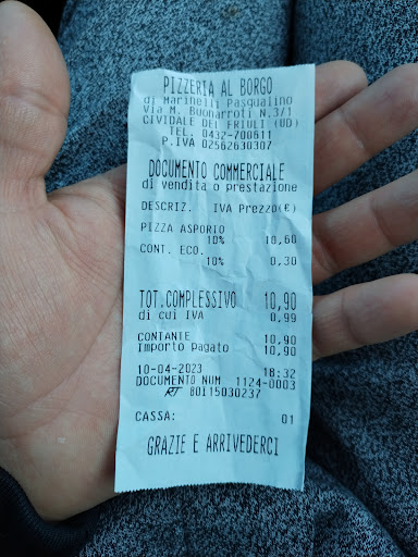 My favourite pizza ever. I live in the same building where Al Borgo pizzeria is located and take their pizza at least once a week. Pasqual, the chef or "pizzaiolo" as Italians say, invents one new pizza every month and they are really special. for example Dicember 2014's one is with pomegranade seeds! Highly...