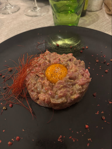 Read morePosto a dir poco fantastico!!! Appena siamo entrati non abbiamo potuto fare a meno di notare il bellissimo stile del locale, accompagnato da musica soft che completa il quadro. Le ragazze che servivano i tavoli, sono molto professionali e preparate, per non parlare della loro gentilezza. Il cibo veramente eccellente!!! Ci hanno offerto una sfoglia per "aperitivo" con crema di patate e ravanello (molto sfizioso); abbiamo iniziato con una tartare di filetto tagliata al coltello, condita con limone, salsa Worcester, senape pepe e tuorlo d'uovo intero; talmente buona che ne avremmo mangiate 10. Poi abbiamo proseguito con una tagliata gourmet, composta da 5 tipi di carne internazionali, per la precisione (coccodrillo, renna, cervo, capriolo, e Kobe) accompagnate da 4 tipi di sale e 4 di salse servite separatamente. Qualità veramente top carne veramente tenera e saporita e la cottura come la adoriamo noi "al sangue"... In ogni caso se avessimo voluto ripassare la cottura al tavolo avevamo a disposizione una piastra calda. Anche i dolci non sono stati da meno... La scelta dei vini è abbastanza ampia e devo dire che i prezzi della carta dei vini è molto onesta. La spesa della cena è nella norma considerata la qualità di ciò che abbiamo ordinato... Insomma più che soddisfatti!! Torneremo sicuramente, perché vogliamo ancora...