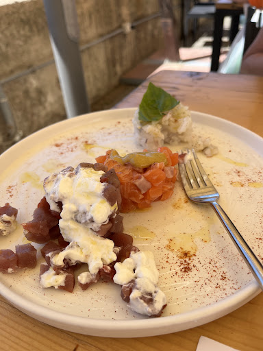 Ho mangiato due volte in questo ristorante. La prima volta era tutto eccezionale, frittura di pesce buonissima e una carbonara di tonno leggendaria. Ho preso anche il tris speciae di tartare e devo dire che quella di tonno con la burrata era fantastica, le altre due niente di che ma comunque si sentiva la freschezza del pesce. E alla fine eravamo un tavolo da sei persone e con il vino e tutto abbiamo pagato 38€ a persona. La seconda volta sono andata con una mia amica quindi eravamo in due. A parte che avevamo prenotato ma dopo un'oretta che eravamo già sedute mi arriva una chiamata sul cellulare chiedendomi dove eravamo perché non si erano accorti che ci eravamo sedute. Abbiamo preso una fritturina mista da dividere, una bottiglia di vino e due porzioni della stessa pietanza: salmone alla piastra con salsa teriyaki e una salsa alla curcuma e cips di patate e qui male male, il salmone era salato al limite del mangiabile infatti non sono riuscita a finirlo e la mia amica (più sensibile di palato) lo aveva appena assaggiato. Le patate bruciate e la salsa alla curcuma insapore. Quando il cameriere ha portato via i piatti ci ha chiesto se poteva portare via, notando che erano quasi praticamente pieni e gli abbiamo fatto notare che era salato a livelli immangiabili, si è semplicemente scusato, ha portato via i piatti e basta. Abbiamo preso un dolcetto da dividere, una cheesecake, niente di che ma ci serviva assolutamente qualcosa per levarci quel sapore di bocca e poi è arrivato il conto ed era tipo di 40 e qualcosa euro a testa. Senza sconti né niente. Giustamente con un antipasto diviso e un dolce diviso e con la portata principale che non è stata mangiata abbiamo dovuto saziarci in altri modi e quindi con 5€ ci siamo prese una macedonia al chioschetto del lungo mare. Veramente un peccato. Do comunque tre stelle perché per la prima volta...