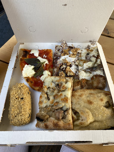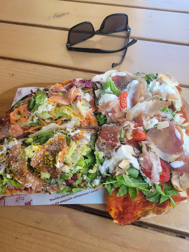 Read moreMi sono fermata in questa pizzeria perchè la pizza dalla vetrina sembrava molto invitante. Non l avessi mai fatto. Ho pagato 20 euro e qualcosa per tre pezzettini di pizza e due supplí. L impasto della pizza era talmente pesante, che ho passato la notte con bruciori di stomaco, e il giorno dopo ancora me la sentivo come pietra. La ragazza al banco, era talmente logorroica che non lasciava tempo di decidere, perchè doveva suggerirti di prendere tutto non lasciando il tempo di fare una domanda, o di concluderla una domanda, lo spazio ristretto avanti al bancone non permetteva di muoversi se poco poco entrava una seconda persona. Non consiglio a nessuno di andarci, ci sono pizzerie meno pretenziose, che meritano davvero. Se potessi mettere zero...