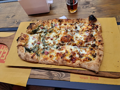 Fantastic, reasonably priced (about 20 euro for 2 people) little pizzeria off the beaten path. The food menu is almost exclusively pizza. Drinks range from beer to non-alcoholic. Orders are placed by the kilo (kg) and you are charged by the kg and the topping you select. With that said, you select the most prominent part of the pizza you would like (e.g. four cheese) and have the option to select 2 or 3 additional combinations on the same pie. These come as individual sections rather than mixed together (e.g. one third cheese, other two third ham). The crust and the sauce are very light, so it's a good option to satisfy a pizza craving without feeling too guilty. I would highly recommend stopping by for a quick...
