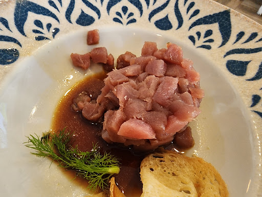 Starting from the bruschetta, the bread was really hard and crunchy, probably overcooked. The Tuna tartar had no flavor at all, it didn't felt fresh, and its color was saying everything. The reason why we ordered Tuna tartar in the first place, was because we watched the advertising on their screen, showing this red and beautiful Tuna and how they were cutting it. What they served to us, it was not even close to it. The Spaghettis with Ragu were so bad that I didn't even eat half of them, not even my husband, that eats everything, could make it🤣. The Ragu had a strange brown color and the only flavor I could sense was the salt, but it was so salty that it was impossible to eat it, and the pasta was over cooked too. They saw we amost didn't touch the pasta, but they didn't even bother to ask how was everything, because in reality they knew it. Oh, I forgot, they removed my knife and fork after the appetizer, but they didn't bring me new ones, not even when the rest of the food arrived. They served the food on the table, they left, and I waited for them to come back, until I had to look for them to ask for another pair, in order to be able to eat the food that it was already on the table for almost 5 min.