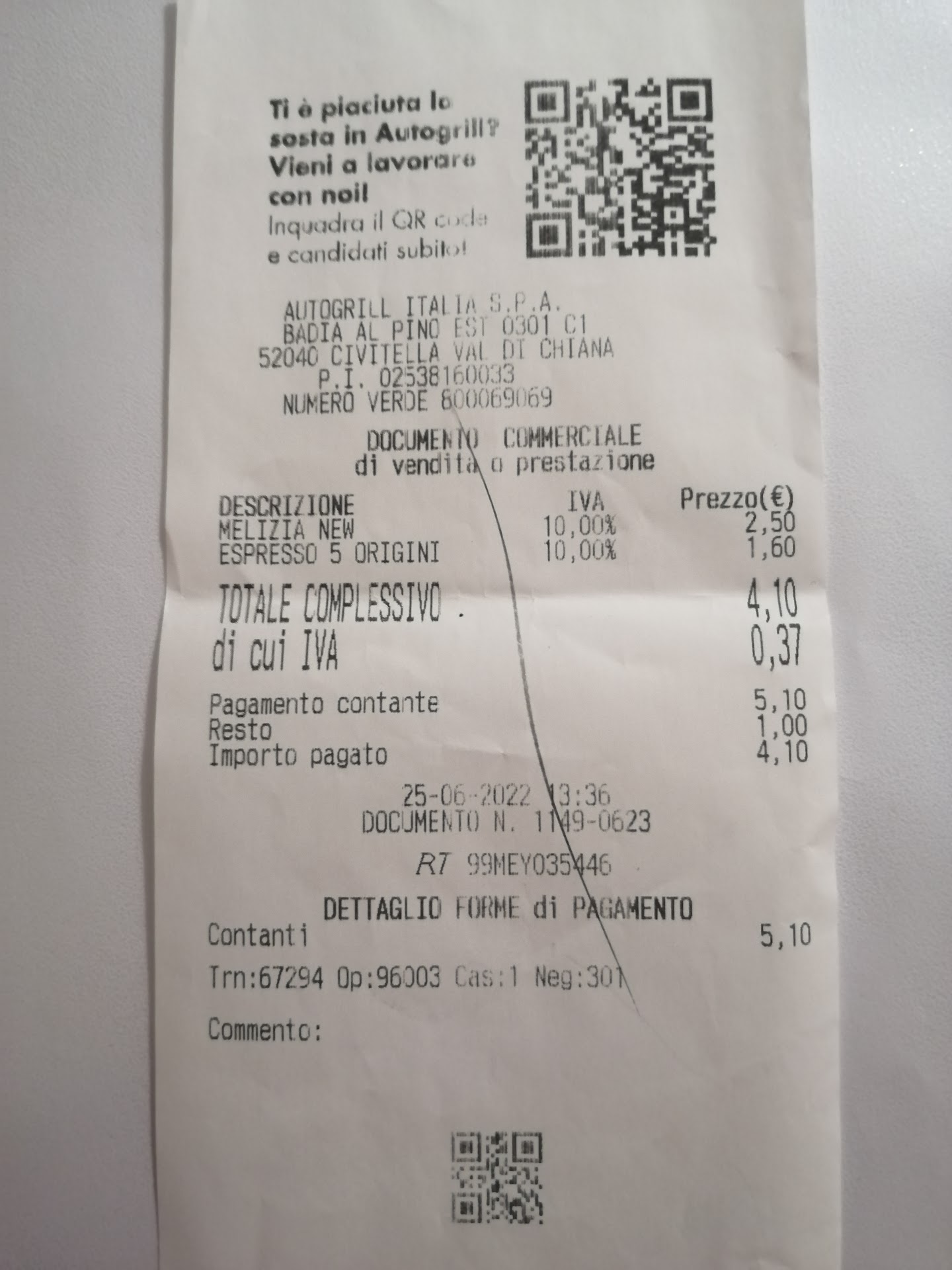 Successivamente parlando in disparte con la responsabile, questa cerca di calmare la situazione ma senza buon esito in quanto la informo che ho intenzione di contattare Autogrill e che esigo il nome della signora in cassa. La responsabile non fornisce il nominativo del personale ed asserisce che non può darlo.