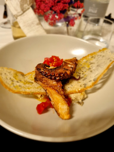 Percorrendo la SS223, quasi a metà strada tra Grosseto e Siena, ecco che, se non sei distratto, sulla tua sinistra potrai ben vedere un piccolo borgo “appollaiato” sulla cima di un colle. Il cartello stradale ti indica l’uscita per Civitella Marittima. Prendi questa uscita, gira in tondo alle due rotonde che troverai sulla via per Civitella. Dopo la seconda vedi subito di imboccare una piccola stradina in salita (parallela alla SS) che dopo pochi metri ti porta giusto giusto al parcheggio del “Ristorante Pizzeria L’Olivo” in località Le Merlaie. Mi ci sono fermato giusto oggi (14 maggio 25) tornando verso l’insalubre “piattura Padana” dopo un più che felice girovagare per terre di Toscana. Il ristorante è nel complesso di un tipico vecchio casolare toscano incorniciato tra Ulivi e profumate ginestre. Gode di un più che generoso parcheggio quindi nessun problema su dove lasciare l’auto. Purtroppo da fuori non rende l’idea ma la sorpresa arriva varcando la soglia d’ingresso del locale. Pochi passi e ti ritrovi in un ambiente veramente carino. La prima sala con travi a vista mentre la seconda un poco più “moderna” ma che subito recupera grazie ad un simpatico arredo. Originali i quadri e comunque bella la vista d’insieme del locale. Va bè, fin qui nulla che giustamente possa farvi decidere di prendervi la briga di sostare in questo Ristorante… vero ma, il bello deve ancora venire. Il menù è sicuramente accattivante e i piatti proposti sono decisamente invitanti. Noi oggi abbiamo voluto lanciarci su Tagliolini Cacio Pepe e Lime con Gambero Rosa, Calamarata con calamari spillo e a finire Frittura di Calamari e Mezzancolle con ciotolina di “sughetto di arancia”. Comunque credetemi… scegliere è impresa ardua, decidere a cosa rinunciare non è così semplice; vorresti prendere tutto ma, ahimè, occorre accontentarsi e rimandare ad una prossima visita. Il “Pancia mia fatti capanna” è improponibile. hihihi