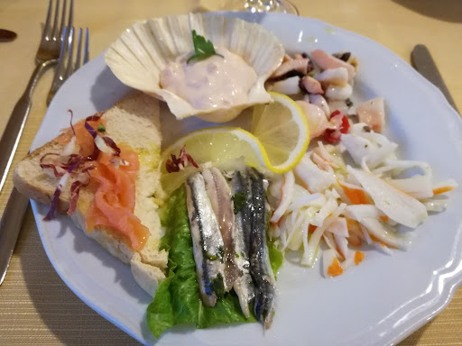 Read moreOttima serata avendo avuto la possibilità di assaggiare uno di tutto. Solo i gustosissimi antipasti assortiti, facevano da pasto completo. Ottimo pesce cucinato senza ricorrere ad espedienti (pepe, o peperoncino) al fine di alterare i sapori naturali, ad evidenziare la freschezza delle materie prime. Tutto annaffiato con dell'ottimo Pecorino. Cantina ben fornita con una carta dei vini più che assortita, a misura di ogni tipo di portafoglio, Locale arredato con eleganza dal clima e dalla conduzione familiare. Da provare sicuramente anche nel periodo dei funghi o dei tartufi, cucinati con maestria dallo...