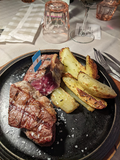 Con amici volevamo scegliere un posto dove mangiare carne il sabato sera, non trovando un posto vicino ci siamo spostati di una trentina di km e siamo giunti a Clusone in questo ristorante che ci avevano consigliato. Appena arrivati si nota subito l'ampio parcheggio. Location di buona qualità e curata. L'unico dettaglio è forse l'illuminazione che secondo me non era sufficente. Menu interessante con ampia scelta di tipologie di carne e di primi. Ottima anche la carta dei vini. Sapendo che comunque per cuocere la carne ci vuole tempo e vedendo che il locale era abbastanza pieno pensavamo di pazientare un po'. Invece la piacevole sorpresa è arrivata quando dopo poco tempo le nostre carni sono arrivate insieme. Ho ordinato un bisteccone di Angus argentino. Cottura della carne assolutamente perfetta e tenera, buonissima! Ho assaggiato anche quella dei miei amici che hanno scelto altre tipologie di carne di varia provenienza (Usa e Australia) Tutte molto buone, la carne di provenienza americana ricorda un po' il gusto della carne di cavallo. La carne Australiana è molto saporita, per me la più buona delle tre che abbiamo ordinato. Un elogio particolare al servizio: Uno staff giovane e dinamico pronto a accogliere ogni tipo di esigenze del cliente in modo celere e educato. Particolarmente apprezzata è stata l'attenzione riposta per la cottura della carne quando è stata servita. Ho concluso la cena con il classico tiramisù, una porzione abbondante e buona.