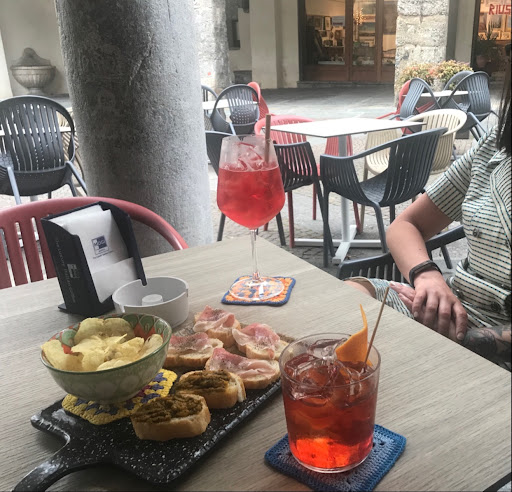 Ci siamo fermati in questo locale per fare un aperitivo e devo dire che mi è piaciuto! Prima di tutto è inserito nel contesto storico del centro di Clusone ed offre una vista davvero straordinaria sull'orologio e sul palazzo del comune, in quanto si trova nel porticato proprio davanti! All'interno invece è davvero ben curato, moderno, arredato con buon gusto! Per fare aperitivo abbiamo preso un negroni ed uno spritz: negroni davvero buono, fatto molto bene, il campari e il gin si sentivano e non è per nulla slavato! Anche lo spritz è ben eseguito, molto buono! Ovviamente il tutto è stato servito con gli stuzzichini, buoni anche quelli! La ragazza che ci ha serviti è stata molto veloce e carina! Ci torneremo sicuramente per provare...