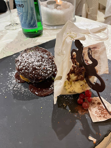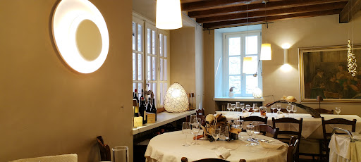 Per dare 5 stelline ad un ristorante, e ancora di più se il prezzo non è popolare, bisogna che rispetti almeno 3 requisiti. Primo, deve soddisfare l'occhio: questo vale sia per il posto, che per l'arredo; ma ancora di più per l'aspetto del cibo. Secondo, deve essere un piacere per l'olfatto: il profumo deve farti pregustare quello che mangerai. E, terzo, naturalmente, deve essere un'esperienza sul piano del gusto. Qui, abbiamo tre su tre, e a pieni voti. Dicevo "almeno" tre requisiti. Perché la gentilezza di chi serve ai tavoli è tutt'altro che ininfluente. Da noi è venuta una ragazza molto dolce. Aveva un italiano perfetto, ma con quella graziosa cantilena che distingue la parlata di questa valle. Ci ha portato un assaggino di vellutata alla zucca, con dentro un gheriglio di noce, e del formaggio locale, il cui nome comincia con "stracch", ma non è stracchino. L'unico problema è che era troppo poco... Avrei voluto chiederle il bis, ma mi sono vergognato. Mia moglie ha preso un risotto; ed era molto contenta. Io un filetto con tartufo, polenta, patate al forno, e funghi porcini. Un piacere per gli occhi, per l'olfatto, ma soprattutto per le papille... La carne all'interno era rosa intenso, quasi rossa. Un burro: avresti potuto tagliarla col pensiero. E i porcini non erano quelli del supermercato. Nemmeno lontani parenti.