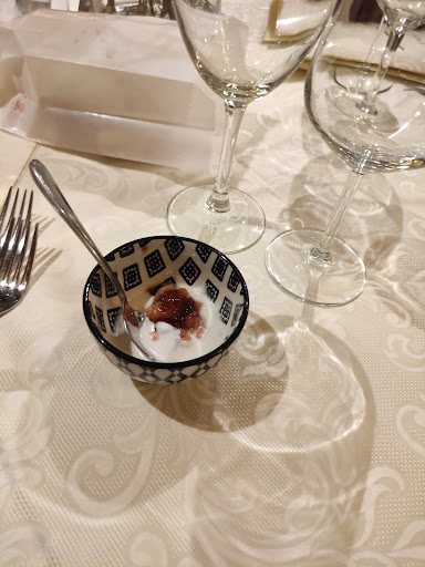 Read moreSe passate da Clusone (e vi consiglio di passarci perché è davvero una bella città) dovete assolutamente provare la cucina d Mas-cì. Vi consiglio di prenotare in anticipo perché potreste trovare tutto pieno! Guardando il menù si ha spesso l'indecisione perché tutte le proposte, a mio parere, sono molto valide. Per la maggiore vanno i piatti a base di tartufo, ma che a me e alla mia compagna non piacciono, quindi abbiamo optato per altro. Di seguito i piatti che abbiamo provato e che potete visualizzare nelle mie foto. Antipasti: -prosciutto crudo San Daniele con tomino all'olio e alloro -salmone affumicato con salsa al mango e arancia, accompagnato da frutti di bosco e fettine di mango (secondo me il piatto migliore assaggiato) Primi: -tagliatelle agli aromi -spaghettoni con funghi porcini e castagne (più che un piatto è un esperienza...davvero buonissimo) Dolci: -tuba di Mango con crumble e nocciole, accompagnata da frutti di bosco, la stessa salsina mango e arancia dell'antipasto (è lei a rendere unici i piatti), nocciole pralinate, e un vasetto con una sorta di marmellata di ribes e fragola (credo). Un dolce sorprendente. -fresca di liquirizia con la stessa marmellatina dell'altro dolce, una lingua di gatto e dei finocchi tagliati sottilissimi. Liquirizia e finocchi abbinamento super interessante! Dimenticavo di aggiungere che, appena arrivate, ci hanno offerto una ciotolina con una sorta di crema di yogurt (o panna? Non saprei) e dei pezzettini di salmone affumicato... Una meraviglia. Avremmo volentieri assaggiato i secondi ma eravamo troppo sazie, le porzioni sono abbondanti. E questo sarà un motivo in più per tornarci. L'atmosfera del ristorante è rilassante, i centrotavola molto carini, la mis en place semplice e curata, e poi gli affreschi sulle pareti hanno sicuramente catturato la nostra attenzione durante...
