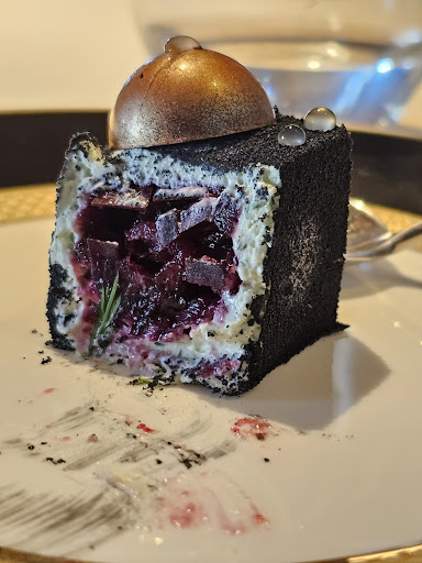 Barbabietola, aneto e yogurt: un dessert sorprendente, dove la freschezza dell’aneto bilancia la dolcezza della barbabietola.