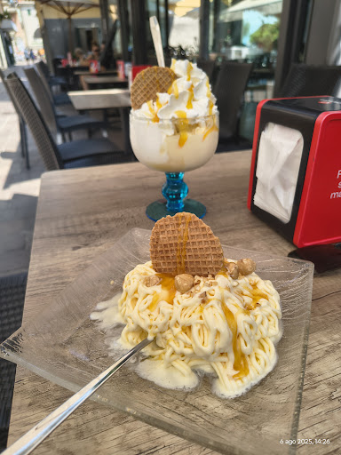 Siamo stati per pranzo in quattro nei primi giorni di agosto.veramente una esperienza bellissima.intanto una buona bottiglia di bollicine accompagnata da un piattino di acciughe impanate. Poi abbiamo preso due grigliate di gamberi e calamari, un piatto di acciughe ripiene, un fritto misto con quattro insalate e una porzione di patatine. Tutto veramente degno di un ristorante, quindi la dicitura bar va dimenticata anche se poi c’è una vasta scelta anche per chi vuole fare solo uno spuntino… Come dessert abbiamo preso quattro coppe gelato, e qui è uscita l’anima della gelateria vera e propria… Davvero squisite… Un’altra bottiglia di prosecco, quattro caffè e quattro amari. Visto che festeggiavo il mio compleanno ci siamo un po’ attardati quindi il proprietario ci ha proposto quattro assaggi di granite, offerte dalla casa così come anche una delle due bottiglie di prosecco. Ho pagato 115 €, nulla per la quantità di cose che abbiamo preso e soprattutto per la qualità.servizio cortese e professionale da parte di tutto il personale. In chiusura ci hanno fatto visitare anche il laboratorio di gelateria, premesso che tutti e quattro eravamo in possesso di haccp essendo nel settore.veramente bravi bravi bravi tutti! Da provare assolutamente… Un ringraziamento particolare al titolare e a Simone, alunno dell’ istituto alberghiero Migliorini di Finale ligure in alternanza...
