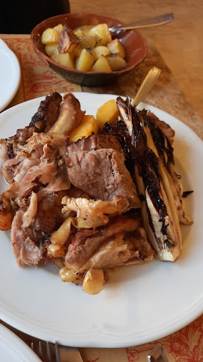 Read moreUna bella Trattoria molto accogliente, personale molto cordiale e disponibile, però io che ero proprio vicino allo spiedo mi sono accorto che nelle spade del spiedo cerano due o tre spade con un pezzo di costina e in pezzo di pollo, infine la costina era stracotta, invece il pollo era come se fosse lessato, difatti le persone che erano nella nostra tavola tutti non anno gradito la cottura del pollo, difatti io hò visto da lontano che il pollo non andava bene, per cucinare il pollo allo Spiedo bisogna fare una spada solo di pollo e farla partire almeno 1,5 ore prima, perché la cottura del pollo è molto più lunga del maiale, visto che anchio faccio gli spiedi da molti anni, anche con 500/700 persone e non si può sbagliare, se fossi voi quando portate la prima portata di carne sarebbe opportuno arrivare subito con i contorni e anche la seconda volta, il mio è solo un semplice spiegazione delle altre persone che erano nella nostra tavola, vi ringrazio, il vino rosso si potrebbe migliorare di molto, il bianco và bene,...