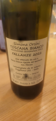 But first a big shout out to the guys how served and cooked the food and poured the wine. It was amazing Now the question: we tried to find this orange wine l, Simona Orsini TOSCANA BIANCO INDICAZIONE GEOGRAFICA TIPICA FALLANZE 2022