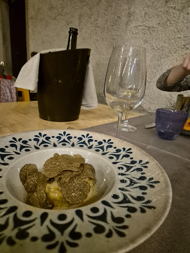 Read moreProvato con un'offerta Groupon molto allettante per un menù di carne, il locale è un rustico che si presenta molto bene dall'esterno, internamente si caratterizza per il grande camino acceso (nonostante il quale l'ambiente era un po' freddo), tavole e arredi sul datato e quadri dal gusto discutibile, secondo me potrebbe essere meglio valorizzato, apprezzabili però le luci soffuse e la piacevole musica di sottofondo, per un contesto romanticamente rilassato. Il menù prevedeva un flûte di prosecco con entrée di formaggio caprino aromatizzato con spolverata di pepe ed erba cipollina con filo di olio del Garda, piacevole ma parliamo di una cuchiaiata per 2, poi trilogia di antipasti: prugne ripiene di foie gras lardellate con pancetta, davvero eccellenti, tartare di manzo ottima e cecina de Leon, sorta di bresaola spagnola, buona. Per secondo abbiamo optato per lo zigeuner di black angus, uno spiedone su cui viene avvolta la carne lardellata, non convincente per i miei gusti in quanto il complesso risultava un po' troppo asciutto, seppur con un piacevole sentore di affumicato e per il filetto con riduzione di vino rosso e aceto balsamico, in cui non viene menzionata la cipolla che in realtà è la regina del piatto, davvero eccezionale per cottura e sapore. Abbiamo scelto in abbinamento il rosso: Valtellina Nino Negri, più che accettabile. Infine dolci: crostata al limone buonissima, con tanta crema e aspra come piace a me, e torta cioccolatina con panna, piacevole. Servizio...
