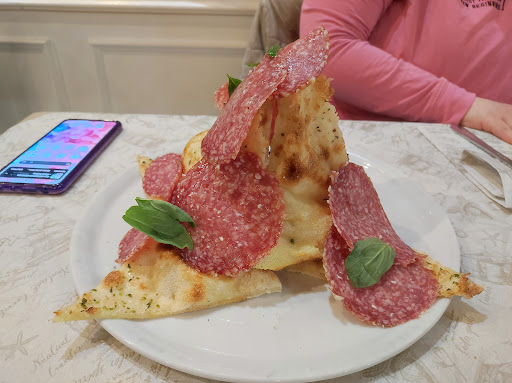 Read moreSiamo stati in questa pizzeria per una pizzata in famiglia, locale non molto grande ma accogliente, per lo meno si riesce a parlare senza troppa fatica, pizze molto sottili ma anche molto grandi, strabordano volutamente dai piatti, direi anche buone e con condimento abbondante, l'unica pecca è che essendo così grandi e sottili si raffreddano anche molto velocemente. Do solo 4 stelline per due motivi principali, i prezzi a mio modesto parere sono medio-alti, per pizze non troppo ricercate si spende tranquillamente 8/9 euro a pizza, seconda cosa è che ci è rimasto l'odore di cucinato sui vestiti fino alla mattina seguente, forse perchè ci è stato dato un tavolo vicino al forno delle pizze, ma questi sono i fatti. Infine una menzione sul titolare e sui collaboratori, tutti molto cordiali e...