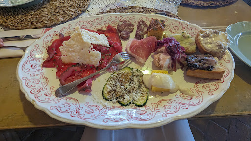Il menÚ è classico, cucina locale orientata alla tradizione contadina, con affettati, formaggi, ragÚ e carne arrostita. Tutto discreto ma nulla che mi abbia particolarmente soddisfatto. L'antipasto misto abbondante, gli gnocchi al ragÚ troppo delicati, quasi insapori. I ravioli con ortica di mia moglie li ho assaggiati ma non mi hanno convinto, ma non amando questo genere di pasta e condimento, non posso dare giudizi obiettivi. Come secondo ho ordinato una tagliata sale grosso e rosmarino, cottura "bleu" (prima di al sangue) ed è arrivata cotta al medio. Anche in questo caso poco sapore e carne un po' dura.
