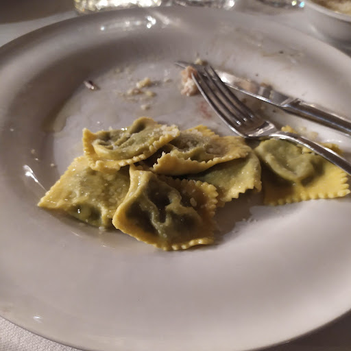 Forse l'uso di una calcolatrice può aiutare,ma forse anche un corso su come gestire una "trattoria"che di trattoria a ben poco visto e considerato i prezzi! Inizio col dire che eravamo una tavolata di 20 persone circa con 5 bambini al seguito con già accordato menù di soli adulti telefonicamente, da qui incomincia la mal gestione,se tu sai che hai 20 persone che mangiano la stessa cosa,non dovrebbe essere difficile organizzare il pasto, e invece...dopo l'antipasto ed il giro di tortelli, alle 23 circa ci portano i contorni ed il pane, ma niente carne, al che abbiamo chiesto informazioni, ma un cameriere (che forse credeva di lavorare da tutt'altra parte) quando abbiamo chiesto dov'era la carne, lui ha esclamato: la carne?!Bene ma non benissimo! Insomma, dopo 10" tutti i camerieri erano spariti,cercavamo invano delle notizie ma l'unica che si è palesata è stata una povera ragazza, che la sua unica colpa è di lavorare in un posto del genere. Dopodiché abbiamo detto che la carne non la volevamo più,anche perché erano passate le 23:30 e subito dopo si è palesato un personaggio al quanto curioso, ma non proprio del settore (secondo me) perché è colui che al momento del pagamento ha sfoggiato tutta la sua fantasia! Una coppia di nostri amici ad un certo punto se ne sono andati e una volta in cassa si sono sentiti dire €45 a testa al che il nostro amico ha esclamato 45?! Il personaggio gli ha risposto che il menù era di €33 meno la grigliata €21 più €110 di tortelli (che onestamente abbiamo chiesto un secondo giro ma saranno state 5/6 porzioni non di più fra zucca e spinaci) più 4 di lambrusco + 18 bottiglie di acqua totale €45 però faccio €40 tolgo €10 insomma una supercazzola bella e buona che forse non ha capito nemmeno lui!Perche una volta toccato a noi restanti,sentivo che diceva ad un suo collega che se avessimo mangiato la carne,avremmo speso €56 cadauno, ma che poi ci ha chiesto €30 dandoci indietro €20 per la coppia di amici che erano già andati. Nota positiva la...