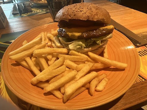 Read moreSono andata in questo locale con la mia famiglia, ero molto incuriosita perché ho visto che era frequentato da molte persone. Hanno un menù molto ampio, siccome è la prima volta, ho preso un cheeseburger e una cheesecake. Ma a dire il vero hanno molti gusti particolari di hamburger e fanno anche la pinsa. La specialità di questo locale è la carne e la birra. Personalmente non mi intendo di birra, ma sembra buona, hanno una gamma ampia di scelta. Consiglio in particolare i piatti di carne, perché cucinano carne di manzo di ottima qualità alla griglia. La carne dell’hamburger era spessa e aveva un profumo invitante, la cottura media che si scioglie in bocca. Complimenti al cuoco per la cottura sublime. Hanno anche le tagliate di carne, che sicuramente saranno deliziose come il mio hamburger. Per quanto riguarda i dolci, sono molto buoni. La cheesecake era cremosa al punto giusto come piace a me.