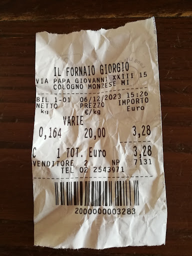 Read moreSono stata lì per prendere una fettina di castagnaccio e la commessa che trall'altro ti chiama gioia senza neanche conoscerti, non ha messo la tara alla bilancia e così mi ha fatto pagare 20 euro al kg anche il vassoi che per quello che so io non è neanche commestibile. Perciò quando andate lì e prendete qualcosa da pesare fate ben attenzione. E in due volte che sono andata non mi hanno mai dato lo scontrino fiscale ma come potete vedere dalla foto, solo quello della bilancia. Per quello che mi riguarda non ci rimetterò mai più piede. Per me può chiudere...