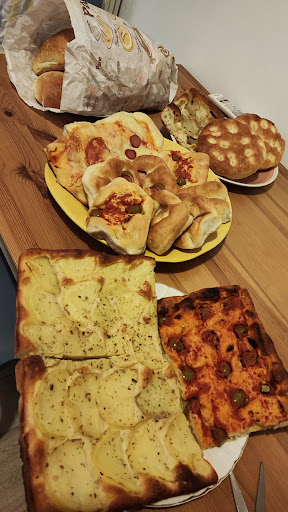 Read moreLocale semplice, accogliente e con diversi parcheggi nelle vicinanze. E' possibile sedersi per consumare un trancio di pizza, o una brioches con caffè. Il rapporto prezzo/qualità del pane è adeguato. Gentile, professionale e di un'onestà degna di stima, la commessa è un importante valore aggiunto. Il titolare del panificio è laborioso, sempre sorridente e con la battuta pronta....