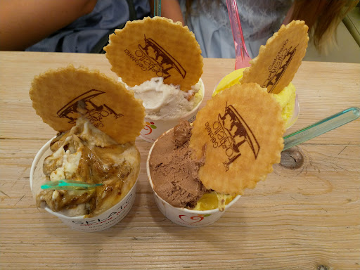 Il gelato è davvero cremoso ed ha un ottimo sapore, peccato per come siamo stati trattati al momento di comunicare i gusti:una ragazza da dietro il bancone in modo molto sgarbato e strafottente ci dice sbracciando delle cose sul modo di ordinare.Ci sono modi e modi di comunicare specie con chi è gentile ed educato, non si sa mai cosa stanno passando le persone nella vita, che magari vogliono solo concedersi 5 minuti di tranquillità,molto più se si sceglie di fare un lavoro a contatto con la gente come questo.Io avrei cambiato gelateria,ma mio marito molto bonariamente, sua dote, ha preferito che rimanessimo.Sbigottiti anche dei nostri amici che hanno assistito alla scena.La giustificazione è stata che questo è il suo modo di fare..Spero davvero che la gente non venga davvero trattata così.Solo perchè il gelato è buono e il bar è situato in un posto di gran passaggio, non si ha il diritto di trattare male...