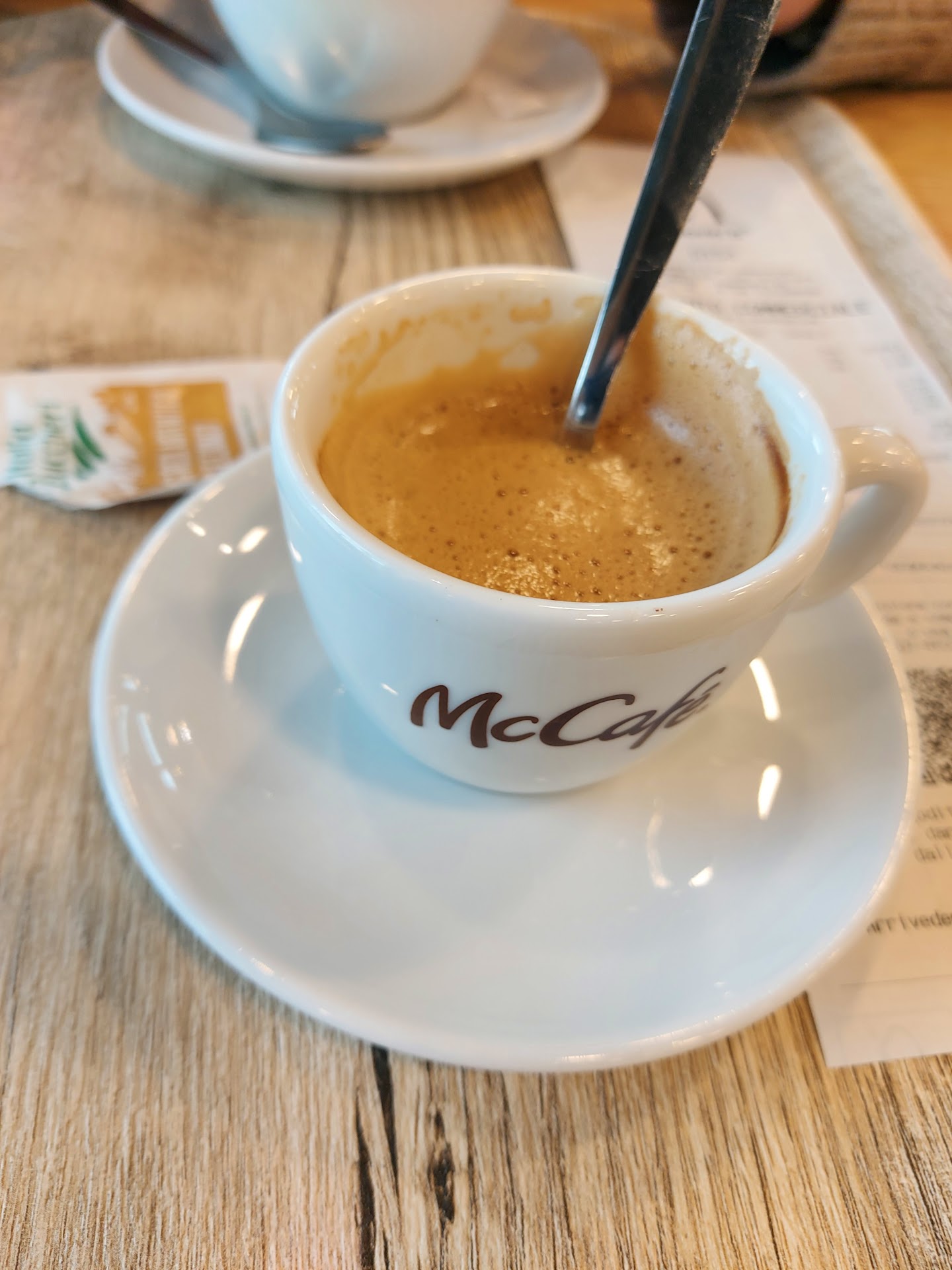 Read moreIt was busy but not especially so when we arrived . We placed our order which included a supposedly hot drink (a large cappuccino) and 20 minutes later the food arrived. First of all that is NOT fast food. Secondly the drink was not hot and presumably had been left to go cold while the rest of the order was assembled. No comment was made about the time taken so I assume that is the normal slow standard for this McDo. We did not have time to raise this at the time as we were only stopping for a flying visit or so we thought!!! Unfortunately McDonald's standards are...