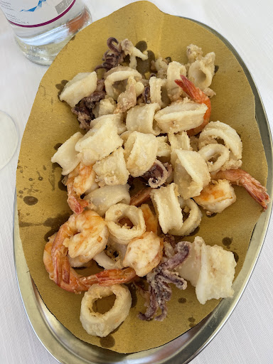 Read moreRistorante più che pessimo (i camerieri scoglionati meritano un capitolo a parte). Ho quasi 70 di età e frequento i ristoranti da oltre 50. Non mi reputo un buongustaio, ma capisco quando sono stato preso per i fondelli.. Dunque.. Antipasto di capesante (3,50 cad.) senza infamia e senza lode. Il primo, spaghetti alle vongole, mi correggo.. spaghettini ( si avete letto bene, spaghettini alle vongole). Quasi accettabile se non fosse che 4 delle vongole erano lì tanto per fare numero, erano vuote (ho controllato prima). Il secondo; mia moglie sceglie calamari e gamberi, chiaramente surgelato e impastellatissimo, davvero un attentato al fegato. Mentre il mio fritto misto di paranza, altro non erano che dei minuti zanchetti immangiabili e 2 gamberetti capitati li per caso. Alle mie rimostranze il cameriere mi ha detto che quello è il pesce migliore, beato lui che si accontenta. Il vino, quello della casa, sembra plastica liquida. Tuttavia per il vino do la colpa s me stesso, forse pretendo troppo per 10 Euro al litro. Tuttavia, alla mia veneranda età ho imparato un'altra lezione..mai farsi consigliare da personale di un albergo. Non tanto per i 90 euro che ho speso, ma mi dispiace per la bella serata che avevo promesso alla...