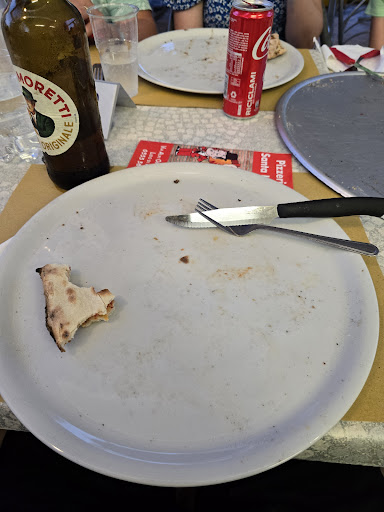 Read moreDie beiden Pizzen waren sehr gut. Dazu eine Flasche Chianti DOCG und ein Liter Mineralwasser. Der Chianti war ebenfalls sehr gut, beides schön kalt. Und das für 32 Euro inkl. Coperto und extra Trinkgeld. Ein guter Preis. Dafür kann man das Ambiente übersehen. Pizzen vom Pappteller, Wasser aus Plastikbechern. Aber gute Weingläser, nicht vorgekühlt. Service sehr freundlich. Wir kommen gerne wieder. Im Juni 24 sind wir wieder hier. Pizza und Wein wieder sehr gut. Kleine Veränderungen: die Pizza ist endlich vom Porzellanteller, das Olio Picante leider nicht mehr aus der Karaffe, sondern aus Plastik. Preise...