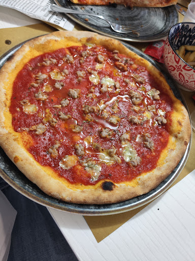 Read moreSiamo arrivati in questo locale per le 20:00 (2 adulti e 1 bambina) parto con il dire che di tutto il personale IL PIU CORDIALE era BOB (Robot da sala). Avevamo chiesto due pizze e 1 panino e ci hanno detto se volevamo anche le patatine come antipasto, cosa che abbiamo accettato ben volentieri se non fosse che è arrivato tutto insieme, locale vuoto ma TUTTO DI CORSA. HANNO SBAGLIATO la mia pizza con salsiccia e gorgonzola portandomi una DIAVOLA con gorgonzola, alla mia lamentela a riguardo mi è stato detto che la pizza fosse questa e che forse non avevo letto bene, alla mia insistenza mi è stato detto che c'era un errore nel menù e che loro la fanno così e se avessi voluto mi avrebbero messo un po' di salsiccia sopra, al ché avendo capito che non avevo intenzione di mangiare la pizza con il salame l' hanno rifatta, una pizza bruttissima😅 con la salsiccia E gorgonzola (foto in allegato a voi le conclusioni su abbondanza di gorgonzola e salsiccia) 🤣 se così si può chiamare perché sembrava il sugo della sera prima con il tritato, e insieme alla pizza è arrivato subito il conto come se volessero già buttarci fuori.